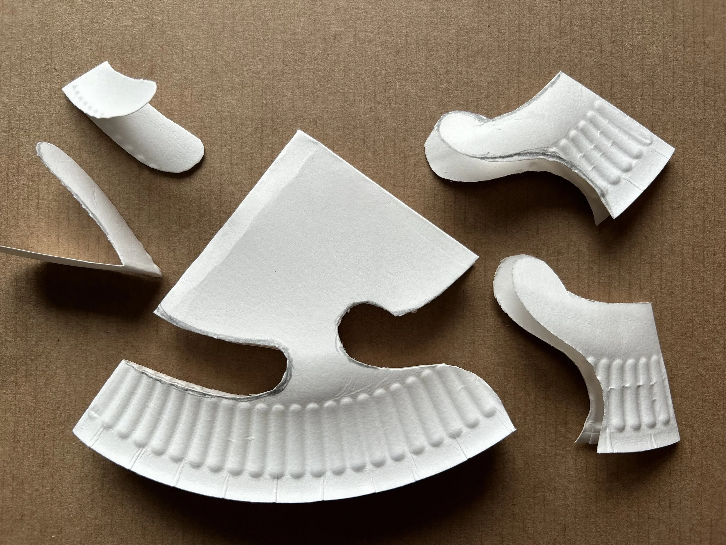 After folding the paper plate twice, into a ‘quarter circle’ then these are the shapes to cut out. Remember, you are cutting through four layers of the plate here, so you need a decent pair of scissors and children might need help.